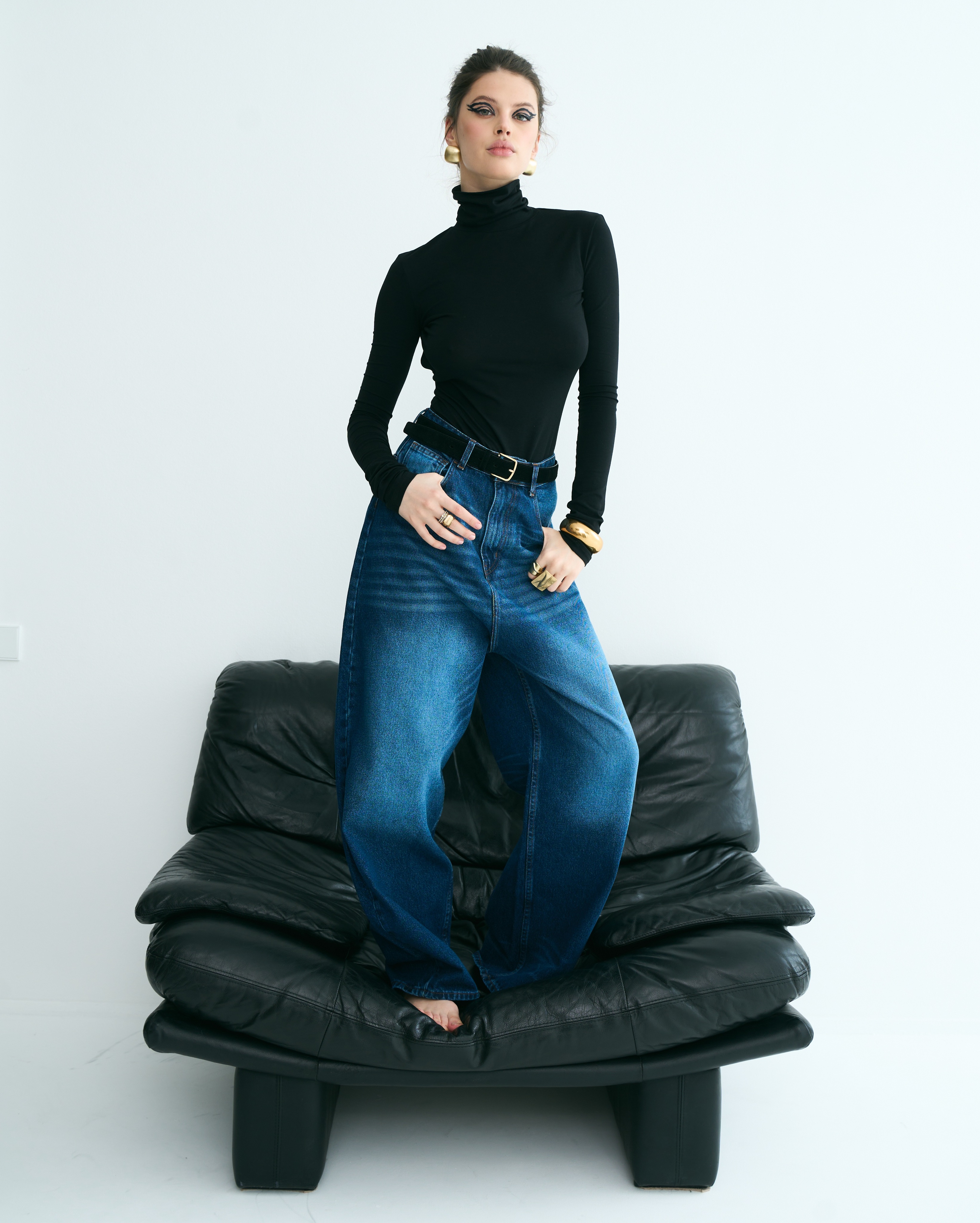 т: пояс 74см, бедра 106см, длинна 117 см.
